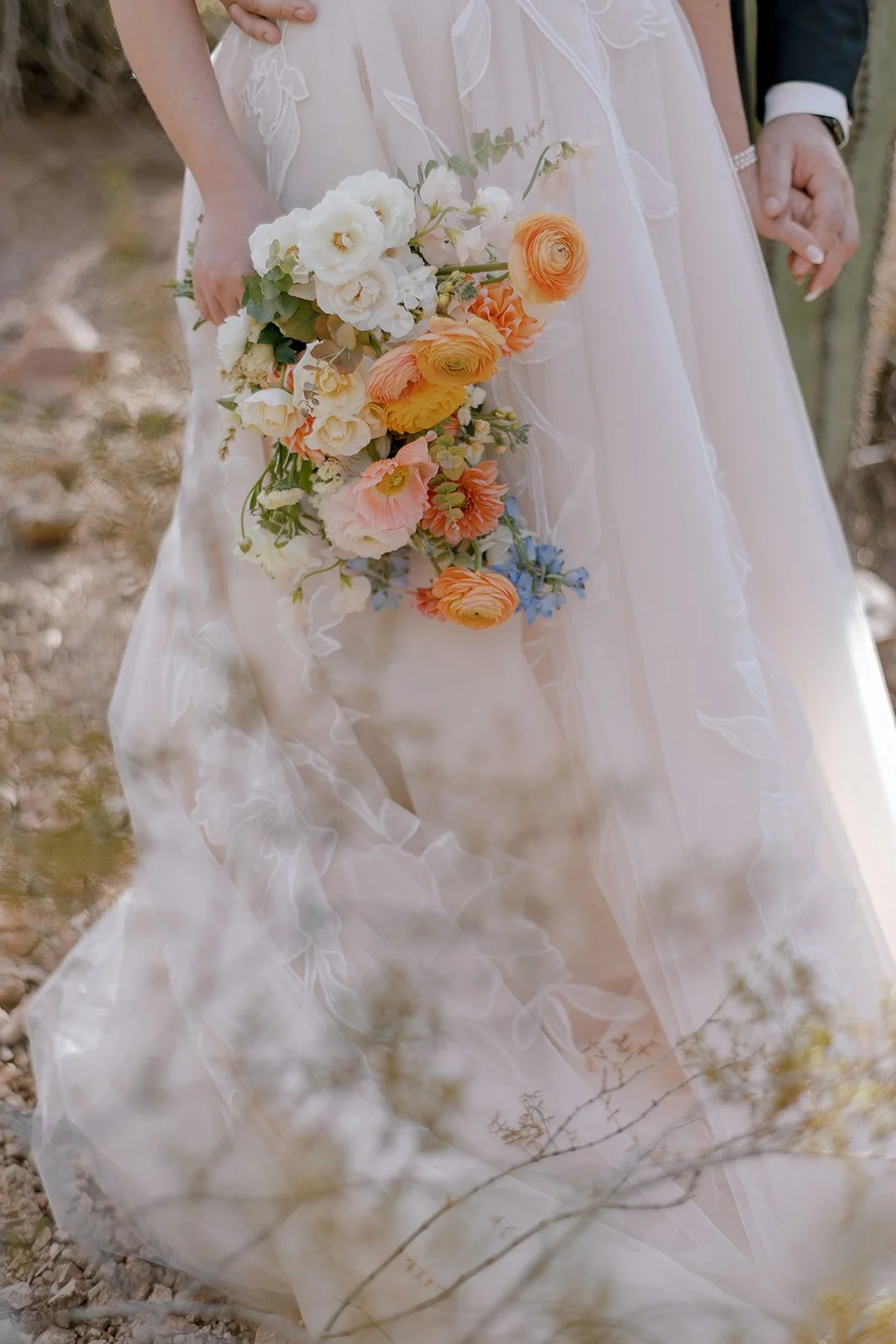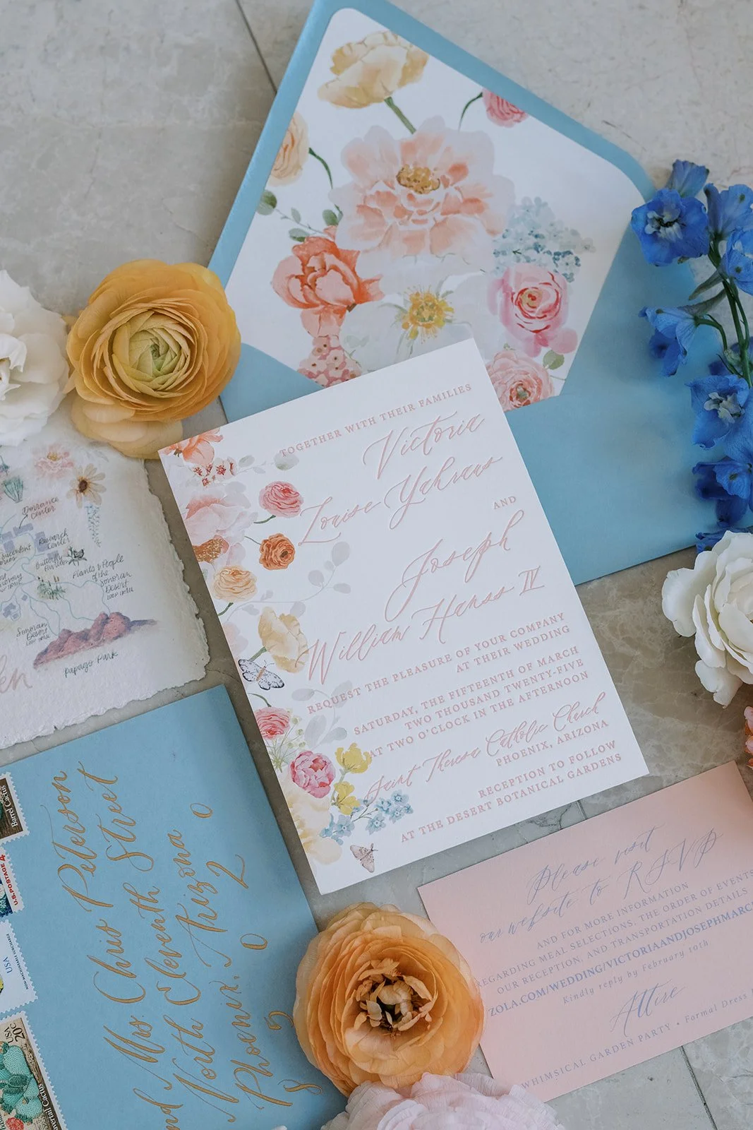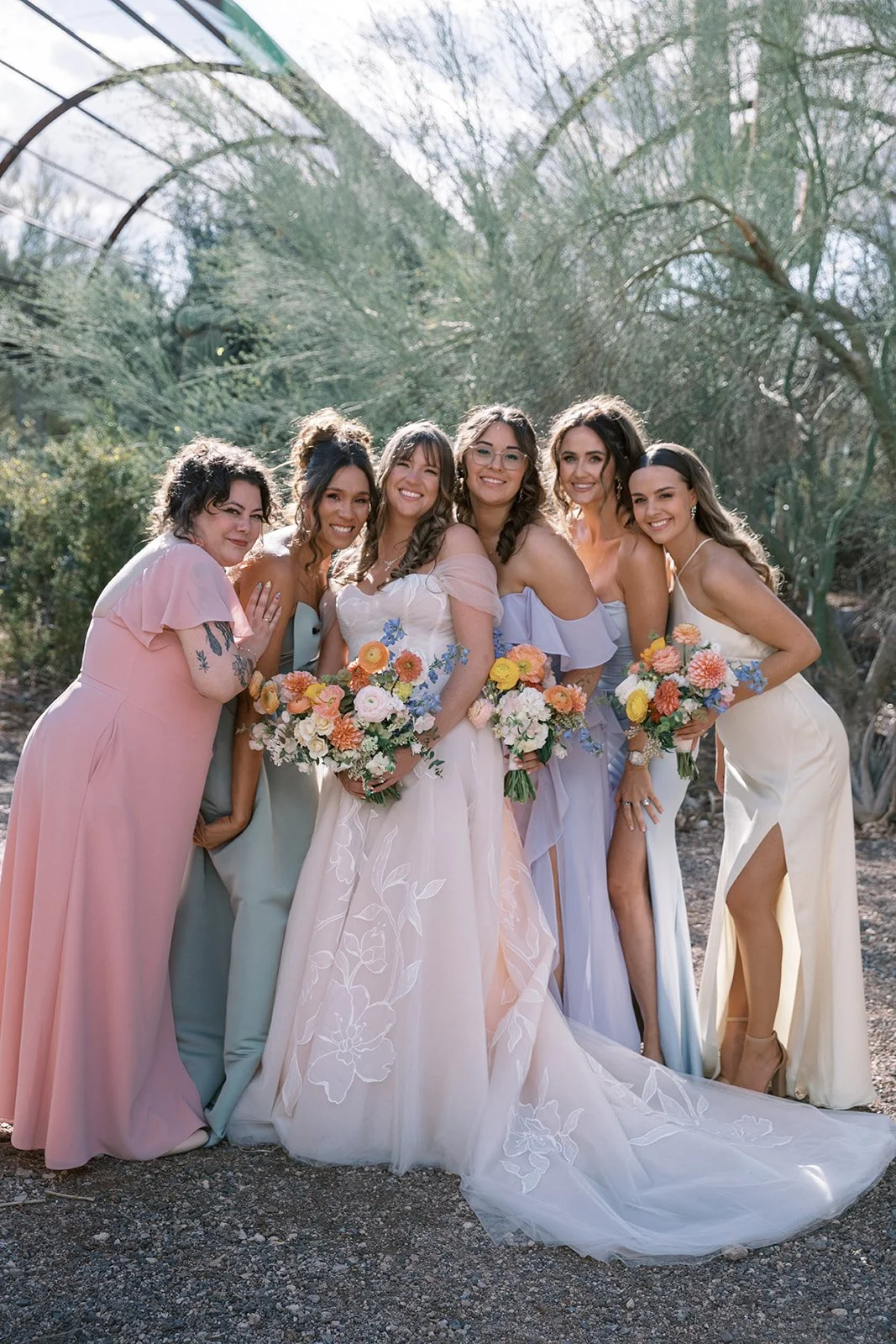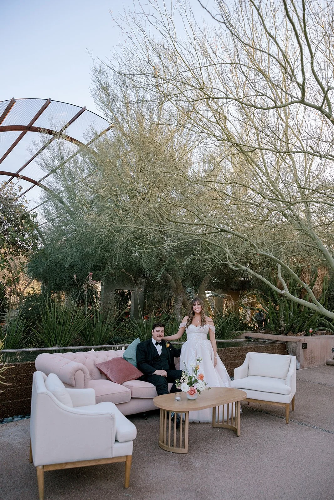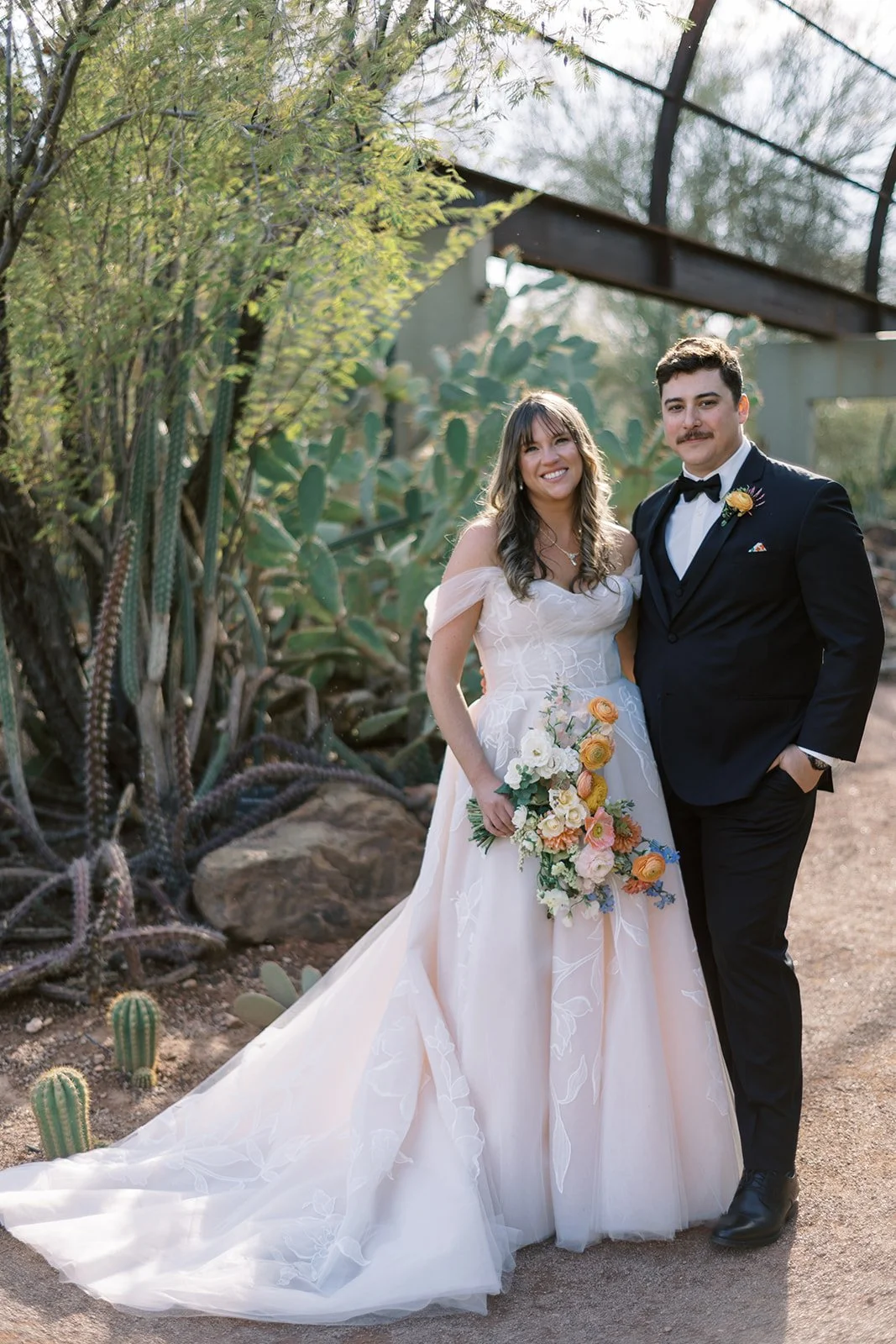 I LOVED working with Tori and Joseph on this wedding!! They were the kindest couple, and were genuinely so excited to get married!! Every time I met with Tori, she had the biggest smile on her face and could not wait for her wedding day. She and her mom (who was also absolutely wonderful) had such a beautiful vision for the design. The ceremony was at St. Teresa Parish and their reception was held at Desert Botanical Gardens. We wanted to convert the indoor space at Dorrance Hall to reflect a romantic, garden setting. Drapery, greenery, lighting and of course the best of rentals completely transformed the space and it was almost unrecognizable! We had an A+ vendor team to help make the day run as smoothly as possible, and although the weather was not the most cooperative the night before, the sky cleared up that morning and it was an absolute beautiful day.